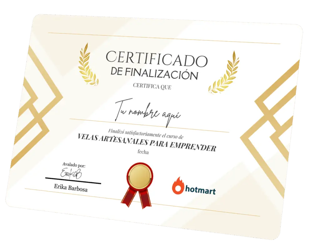 El curso es hermoso y las clases son muy claras. La plataforma me funcionó perfecto y aprendí a hacer mis velas rápidamente porque la profesora explica con muchísima paciencia. Gracias a Dios ya tengo mis primeros pedidos y poco a poco mi emprendimiento va creciendo. Sin duda, este curso está hecho con mucho amor.